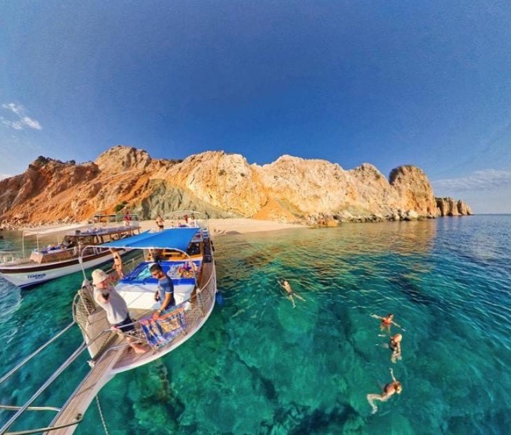After our morning swim and breakfast we up anchor to cross the bay from west to east and then moor again off the beach of SARSALA where a huge seagull has been painted on the rock. We go ashore to begin our five hour walk. The route takes us through pine forests, over rocky ground and into a traditional southern Mediterranean environment. There are Lycian tombs and sarcophagi visible from the path. Picnic lunch. We again pass Cleopatra’s Bath on our way north. In the afternoon our boat meets us and we have time to recuperate along the coast from where we began our day. Then we sail to FETHIYE (2h30). We tie up in the harbour. Take a walk around the town, visiting remains of the ancient TELMESSOS (a Greco-Roman theatre, Lycian tombs) time for shopping. Dinner and stay the night on board.